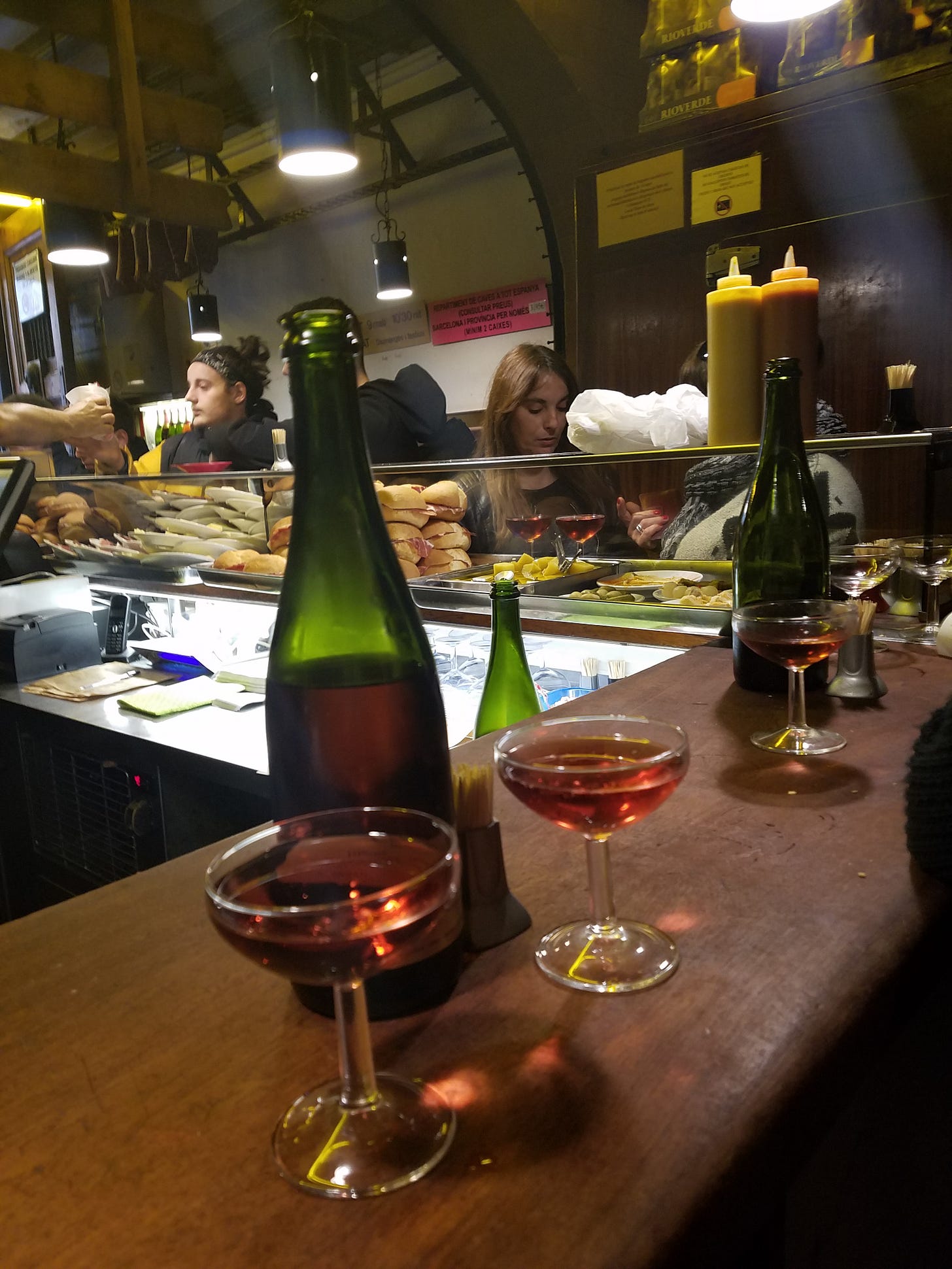 I first wandered into Can Paixano by mistake. I was walking from Barceloneta to the Gothic Quarter when I was drawn by the buzz coming from the dark cafe. A small line was forming, even though it was still early in the afternoon.