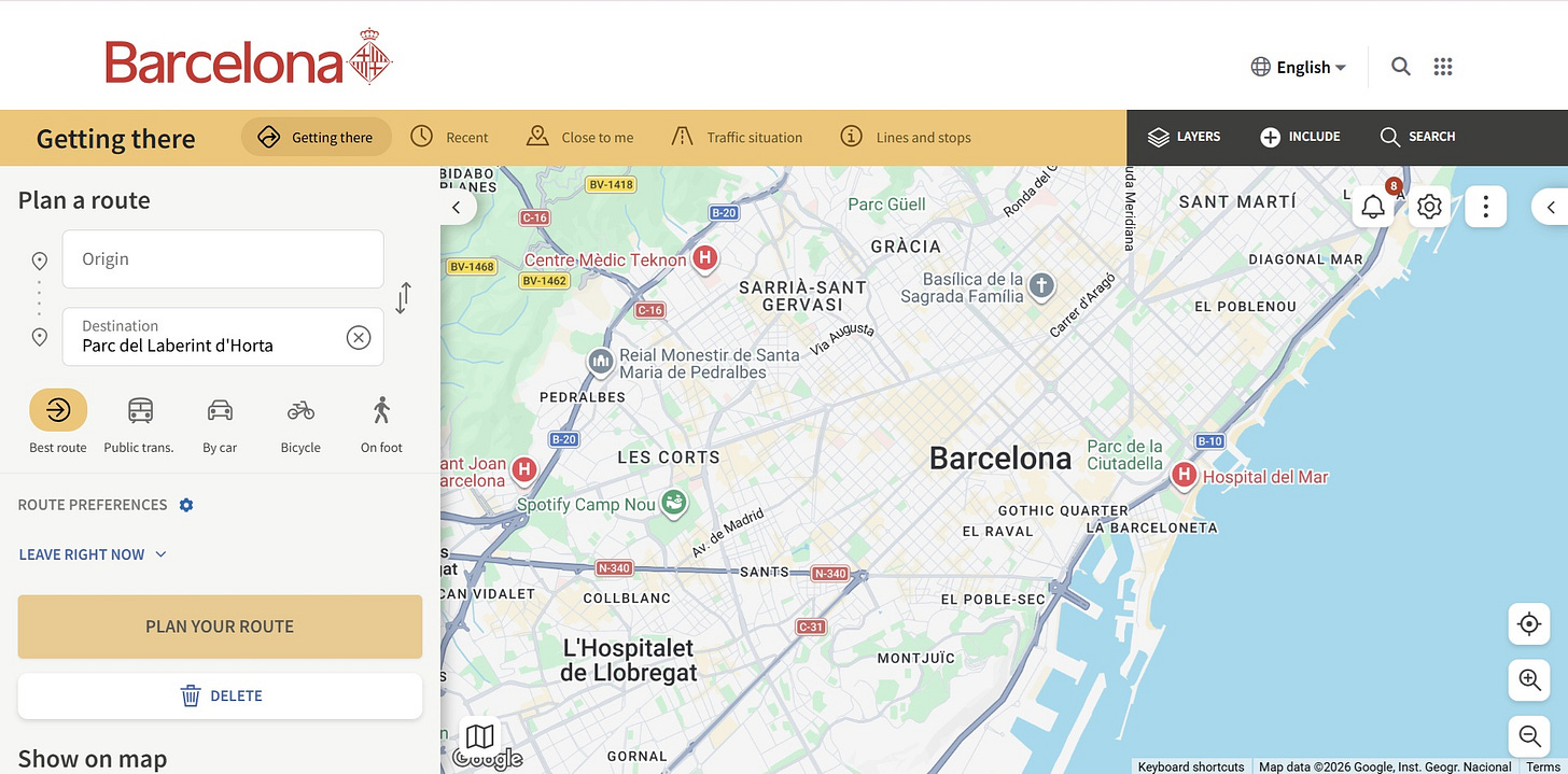 A good example is the city’s Getting There site, which offers an easy-to-use route planner. You can plug in your destination, and the planner will offer the different transportation routes available, including the busses and metro. The site offers live traffic updates and includes cycling and walking routes, which gives you a clear idea of the options. (One tip I always share: Barcelona is on a hill; I like to take transportation up the hill and walk down the hill.)