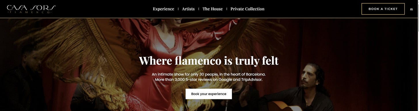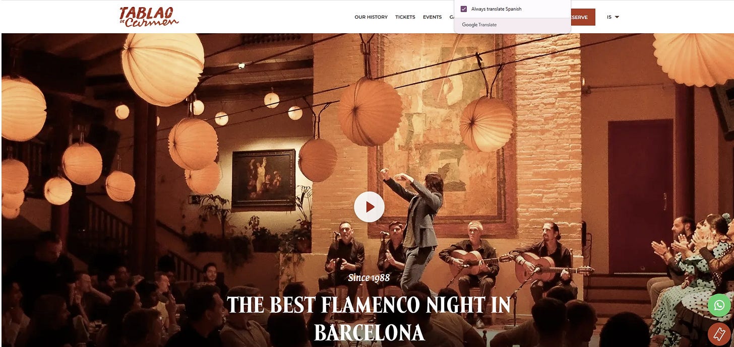 For a place a little off the beaten path, Casa Sors caught my eye, and it consistently gets good reviews. I can’t vouch for the show, but I like that it includes a “museum” of flamenco guitars. Casa Sors is billed as a family business founded in 1972 with “more than 50 years of musical and guitar tradition.” It also claims to the “best-rated” show in Barcelona. It’s located on Consell de Cent, the pedestrian street off Passeig de Gracia.