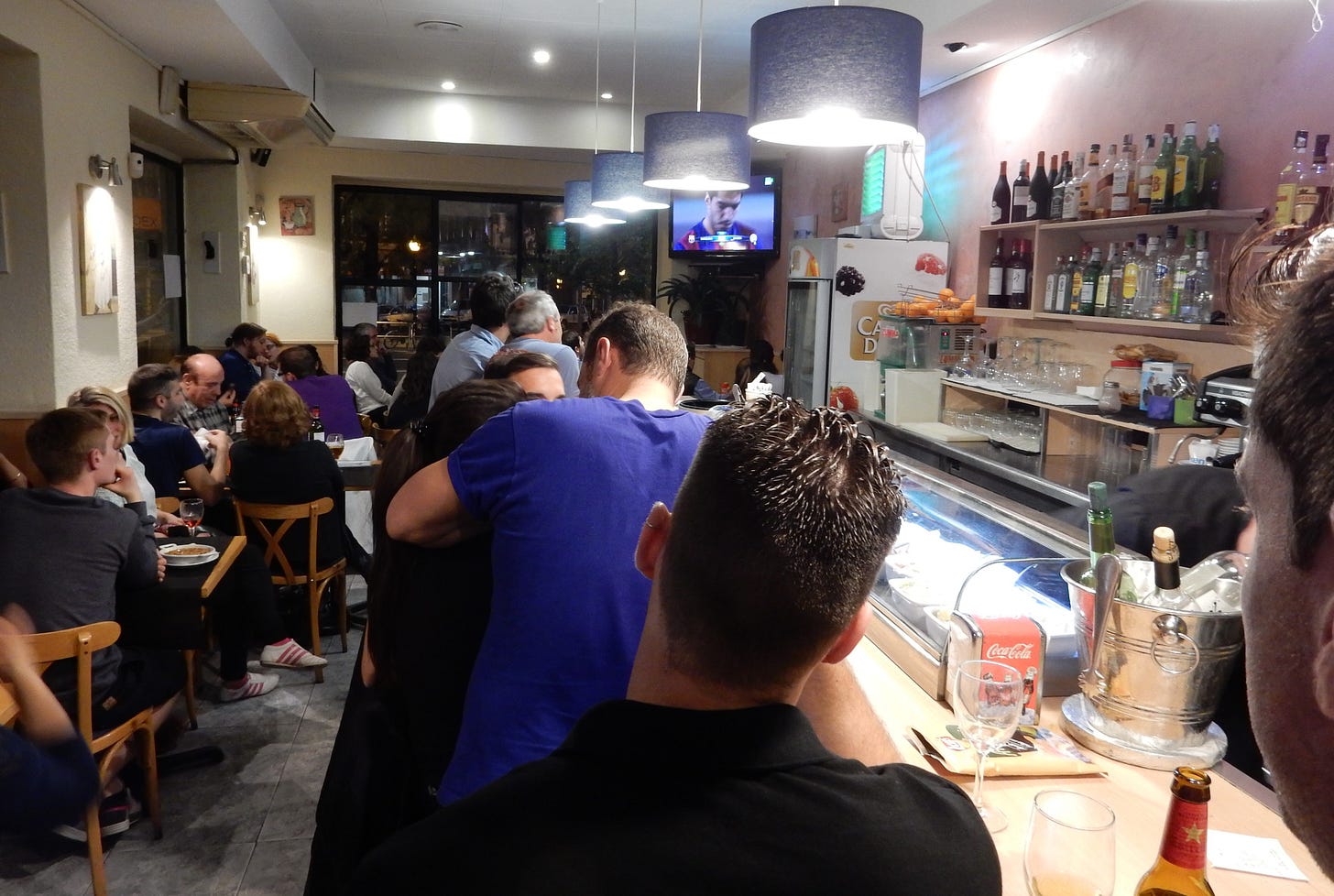 But the lights of a small place on the corner caught my eye. My only goal was to find a place to watch the Barca match and have a beer. The café was small, but I spotted an empty stool at the cramped counter. Drowned by the sound of the announcers booming from the TV, I shouted an order for patatas bravas and slid between a stoic older couple and two surly-looking young men in black. Everyone was glued to the TV, ignoring the chatter and bustle of the restaurant around them. The game progressed; people cheered and drank. And then it happened: a flash of greatness, something wild and wonderful that would leave us flabbergasted, excited, and mesmerized by the ability of an athlete to create something mythical.