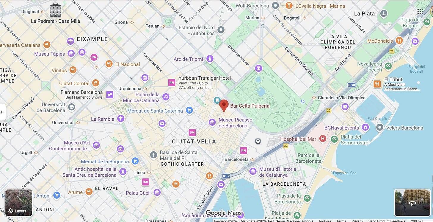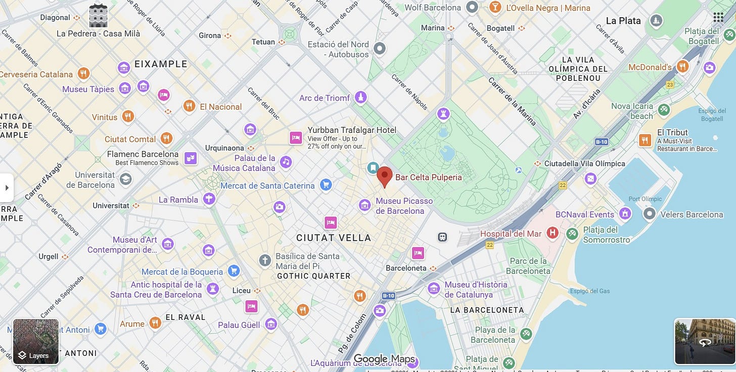 Bar Celta has a second location, on the edge of the Gothic Quarter, closer to Passeig de Colom (Carrer de Simó Oller, 3, Ciutat Vella, 08002 Barcelona, Spain)